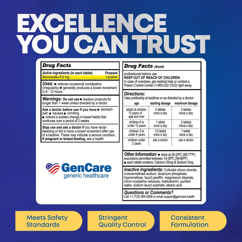 GenCare Senna Laxative 300 Tablets Senna 8.6mg Tablets with Natural Sennosides | Laxatives for Constipation, Bloating, Gas & Irregularity Relief. Safe & Effective | Generic for Senokot