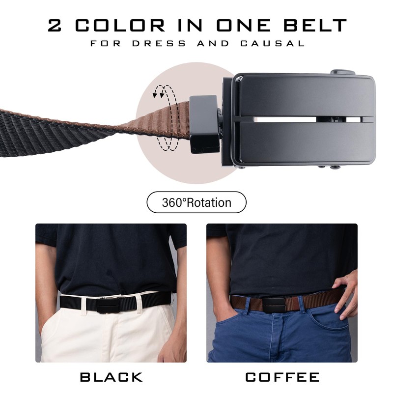 • Two Color One Belt: Golf belt for men is reversible and matches two colors on one belt.The buckle can rotate 360 ° to turn the belt to the color you want. The reversible belts increase the possibility of clothing matching.