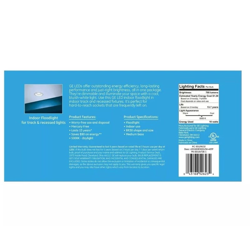 General Electric GE Daylight LED 65W Replacement Indoor Floodlight BR30 Light Bulbs (Pack of 4)