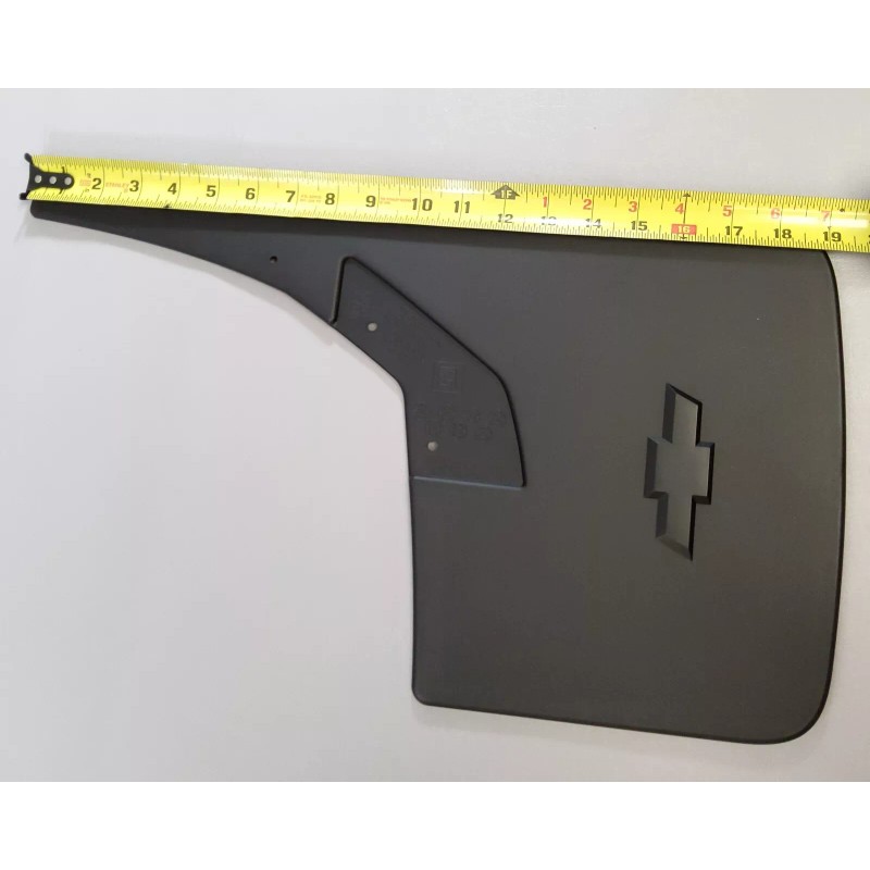 This is an original NOS GM new pair of flat black with embossed bowtie logo rear mud flaps for vehicles listed in the compatibility chart