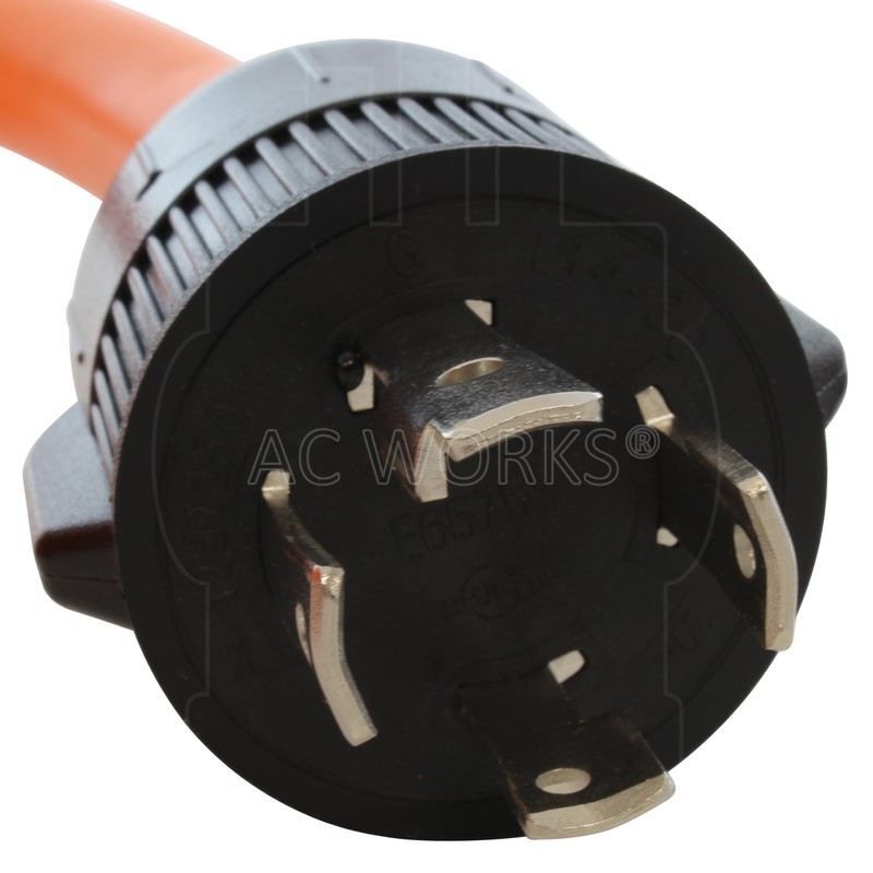 This AC WORKS brand extension cord [L1430EX] is heavy-duty and made of durable construction. The cable is STW, 10/4, 30 Amp copper with a 600 Volt jacket. The jacket will stay flexible in extremely cold weather. This cord is popular for use with transfer switches and inlet boxes, generators, industrial use, and construction. The extension cord is backed with a 5-year limited warranty. Features NEMA L14-30P to NEMA L14-30R NEMA L14-30 Generator Extension Cord Transfer Switch Power Cord 30 Amp, 4-Prong Locking Power Cord STW, 10/4, 30 Amp Copper with 600 Volt Jacket Common Uses Temporary Power