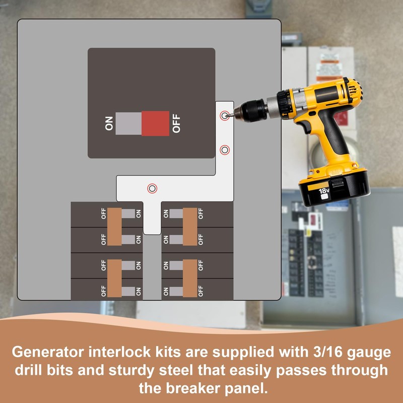 • Easy to install: The generator interlock kit provides a drill, and the sturdy steel can easily pass through the circuit breaker panel. Easy to install, no additional control box or wiring required