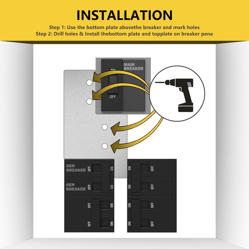 - Package Include:Generator interlock kit include: 1× Interlock Plate,1 × Drill Bit,4 sets of screws, 5 × Remind Label, 2 × Zip Ties, 1 × Installation instruction.