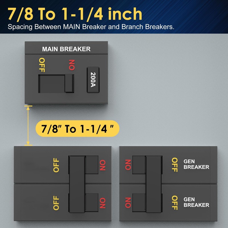 - 【Check the spacing】 The Spacing between main and branch breaker is 7/8 to 1 1/4 inches