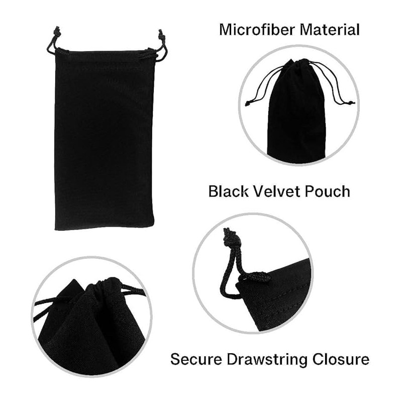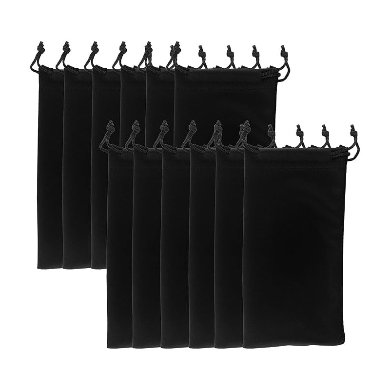 Generic 10 Pc. Black Microfiber Eye Glasses & Small & slim Gadgets Accessories Bag-Pouch with Drawstring Closure for Cleaning, Protection, & Storage. Slim Sleeve 2.5"" x 6"" Size.