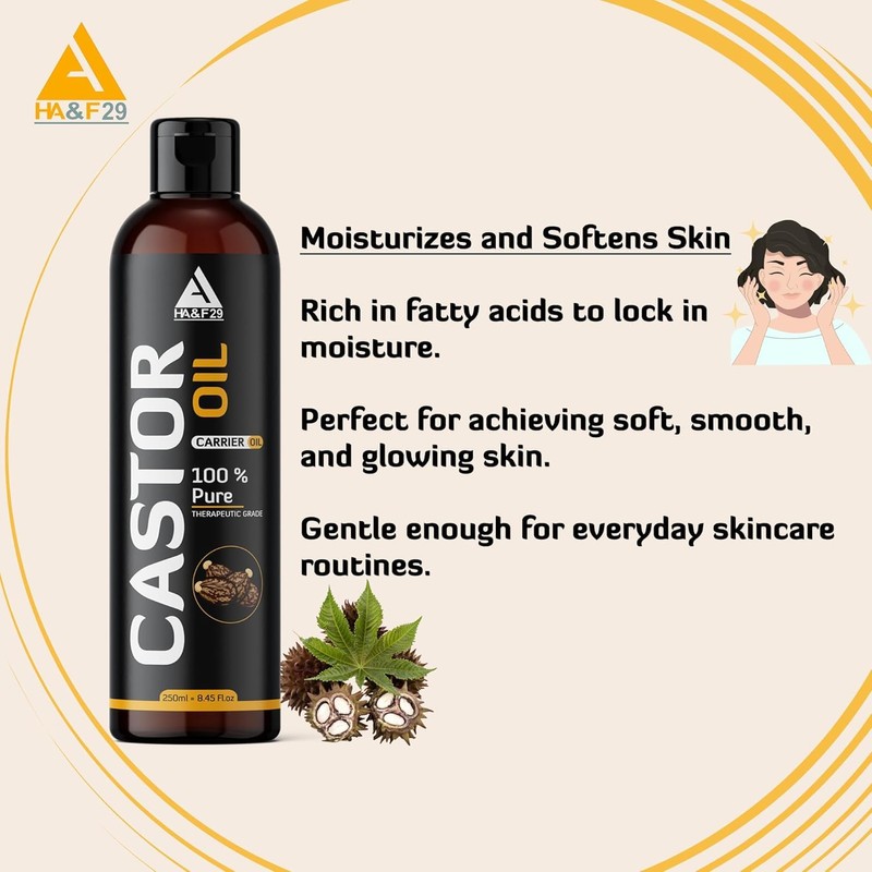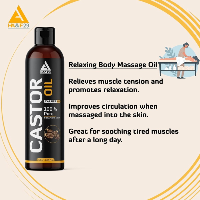 - Multipurpose Carrier Oil: Castor oil has a rich, viscous texture that makes it an excellent carrier oil for diluting and dispersing essential oils for aromatherapy, massage, and skincare applications.