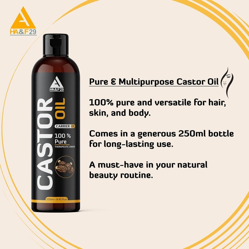 the therapeutic benefits of 100% pure castor oil, a versatile carrier oil with a rich history in Ayurvedic medicine. This therapeutic-grade oil from is cold-pressed from the finest castor seeds, ensuring maximum potency and purity. With its distinct nutty aroma and thick, viscous texture, castor oil is renowned for its nourishing and conditioning properties. Use it as a base for homemade beauty formulations, massage blends, or hair treatments to promote healthy skin and lustrous locks. The included dropper makes it easy to dispense the desired amount. Embrace the ancient wisdom of this natural treasure and elevate your self-care routine with this premium 250ml bottle of castor oil.