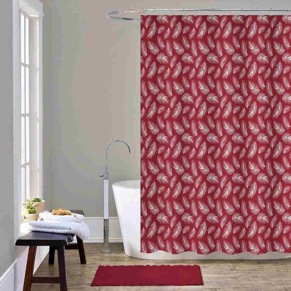 Generic 14 Piece Bathroom Set Fabric Printed Shower Curtain/Chenille Rug/Metal Roller Hooks (Feathers Burgundy), Solid, 686091214160