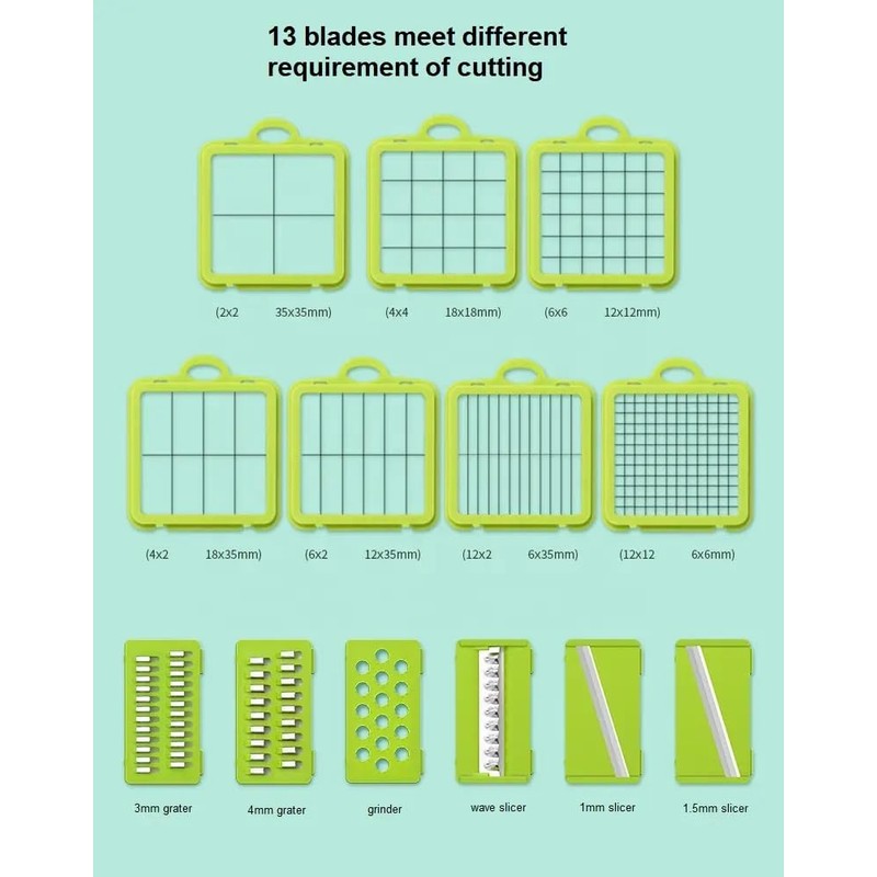 Generic 22 in-1 Pro-Vegetable Chopper, Multifunction Fruit and Vegetable Cutter, Dicer, Slicer, and (All in One) Product, SMALL, Green