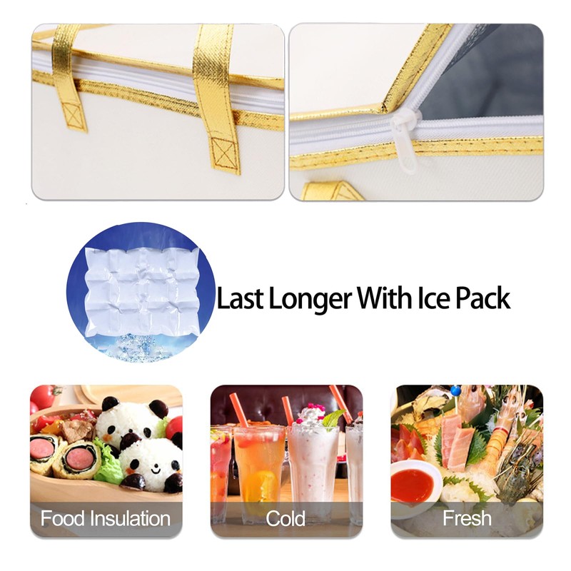 - NOTE: Cold drinks, ice cream, seafood and other cold chain storage, put 3-4 bags of ice boxes in the bag