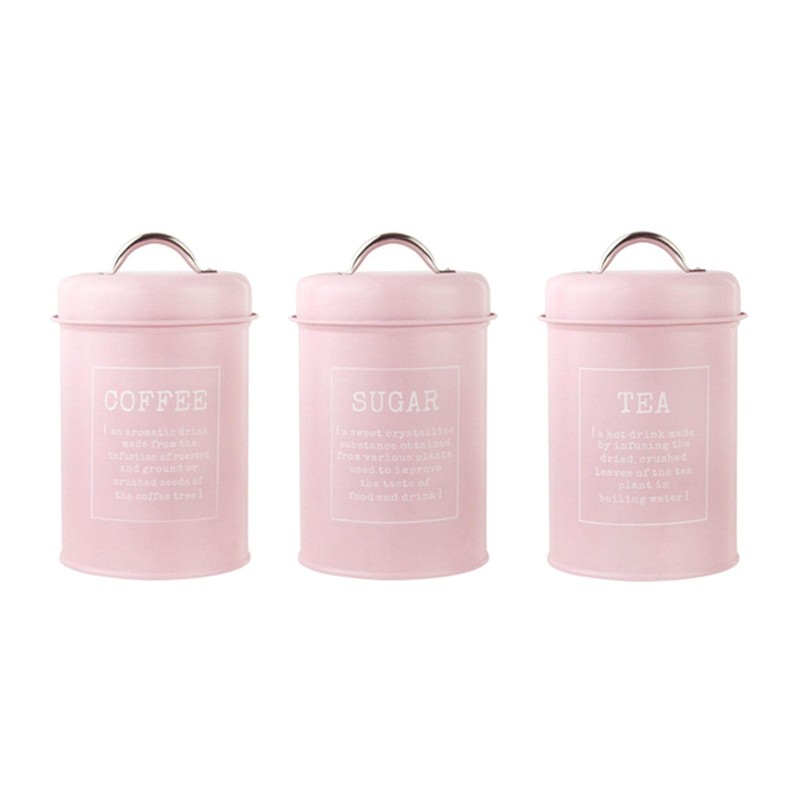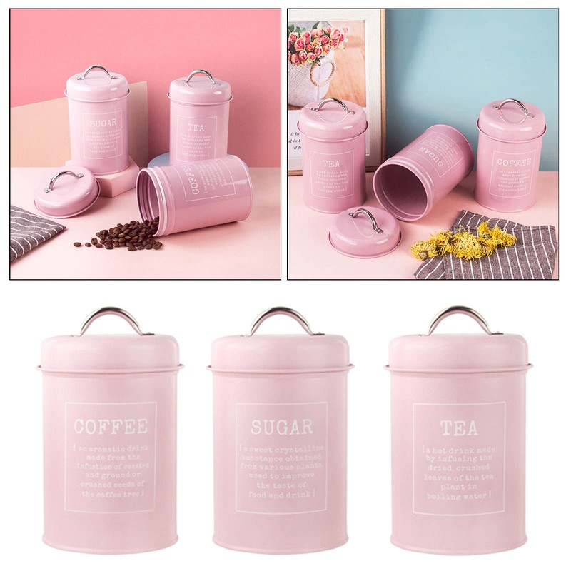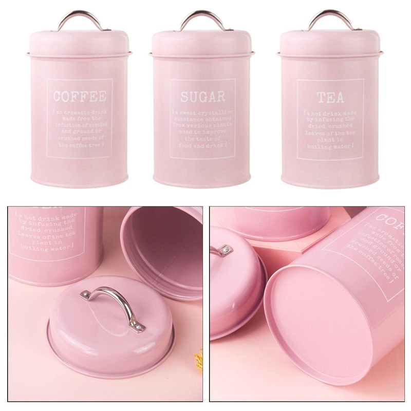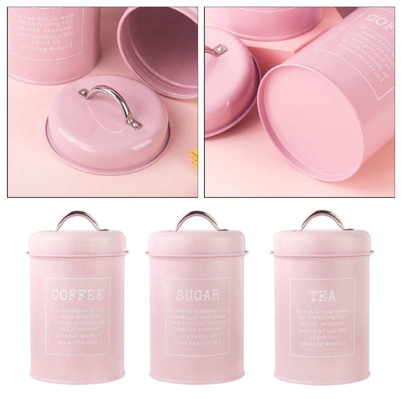 Generic 3pcs Kitchen Canister Set 1200ml Coffee and Tea Sugar Storage Tins Countertop Organized, Pink