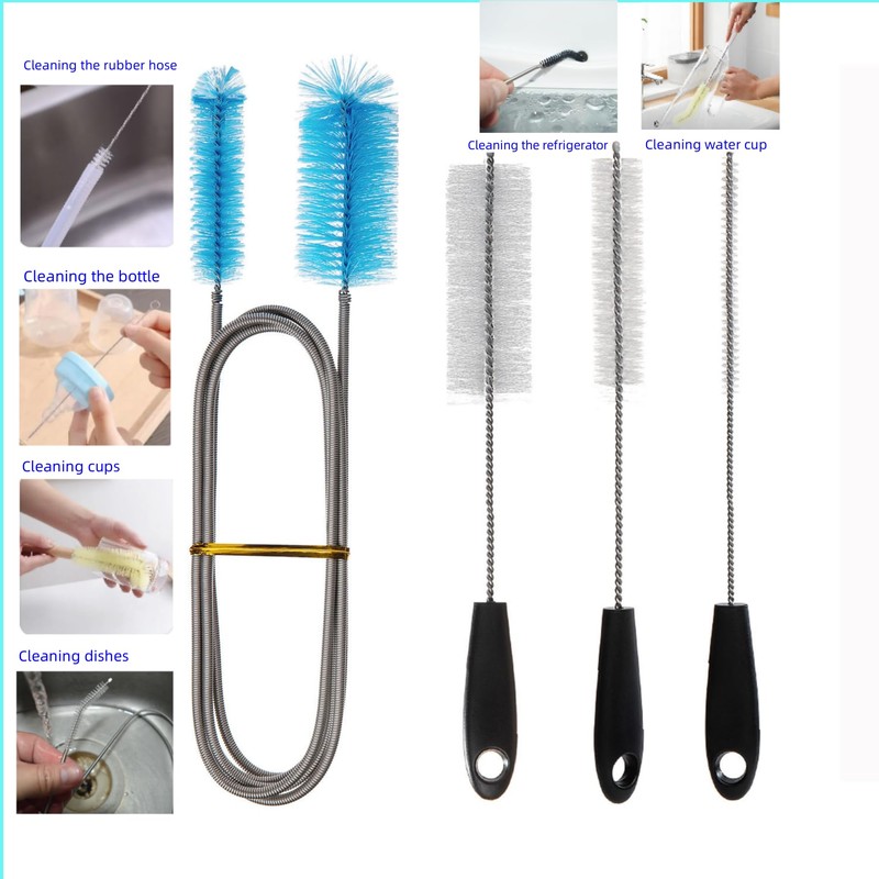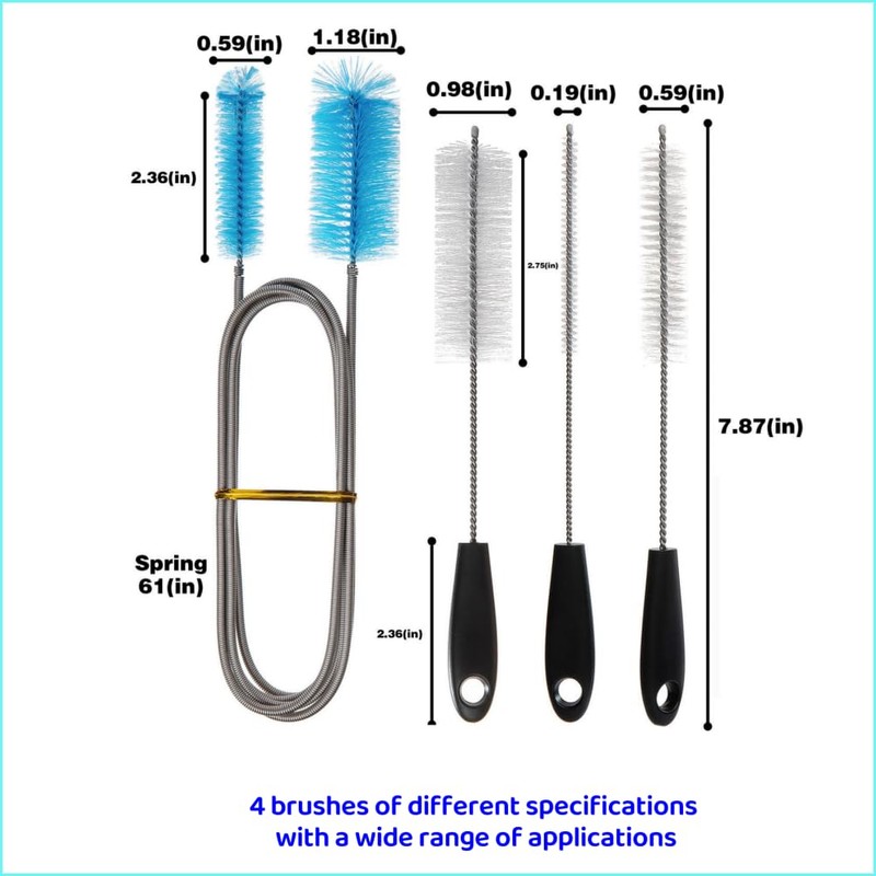 - 4 double headed bidirectional nylon cleaning brushes, drain brushes with handles, straw cleaning brushes Widely used, suitable for utensils such as water bottles, refrigerators, water pipes, and baby bottles.