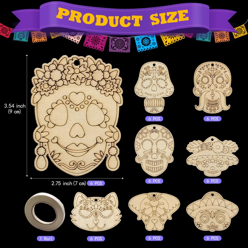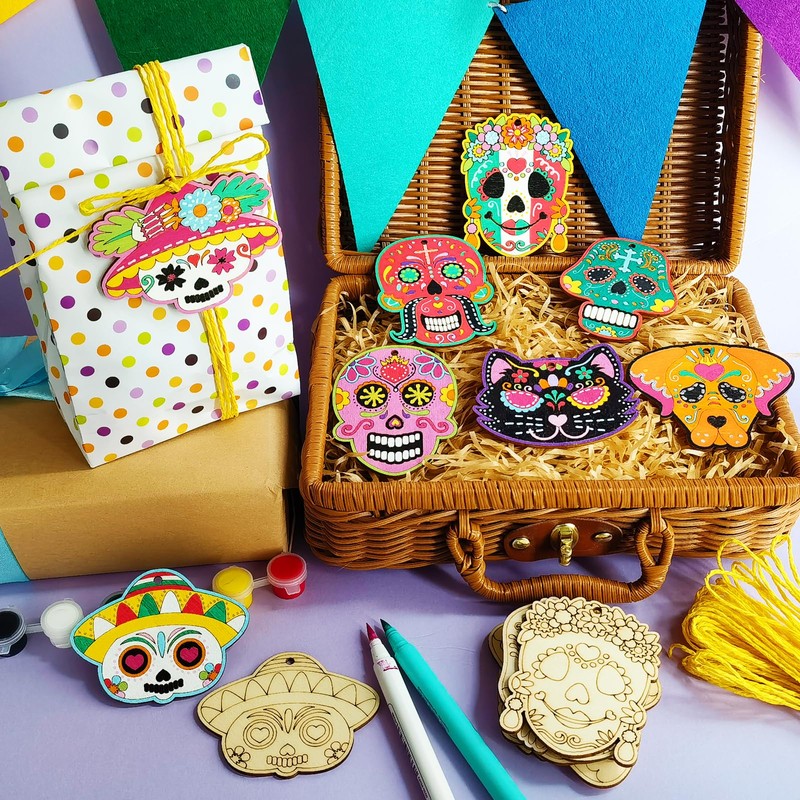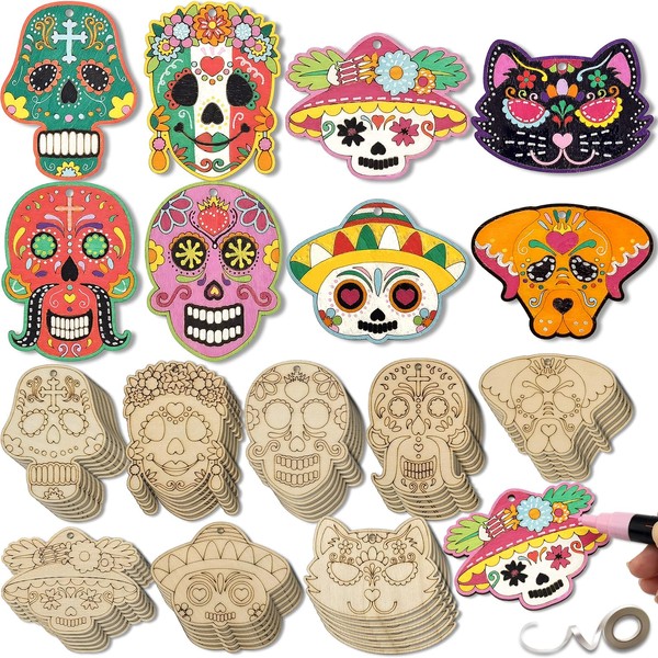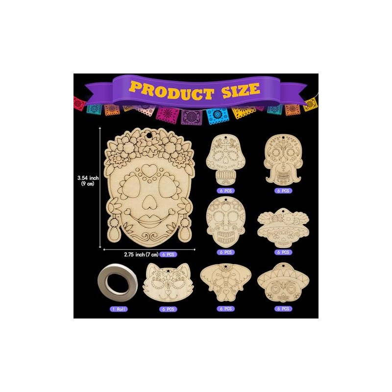 - Wooden ornaments for crafts: These Day of the Dead craft kit is unpainted, so you can paint your own holiday skull hanging decorations with creative ideas using paints and markers.suitable for beginners and experienced people; A great fun art activity with your family, and enjoy the great happy DIY time and enhance your relationship
