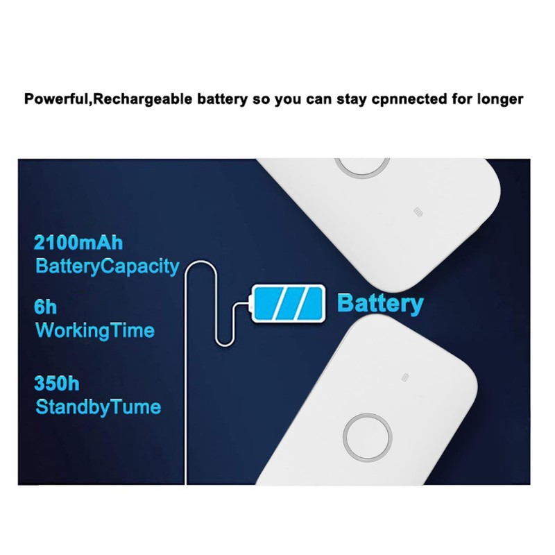 - [Rechargeable Battery]: The mobile hotspot router has 2100mAh rechargeable battery that can be used continuously for a long time, plug and play, and your mobile device can surf the Internet anytime and anywhere.