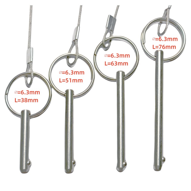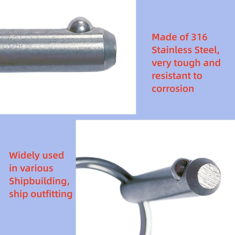 Generic 4P Marine Hardware, Full 316 Stainless Steel Bimini top Ball pin, Latch Safety pin Single Plant Latch Ring Latch with Lanyard and Screws (Φ1/4"" x 2"")
