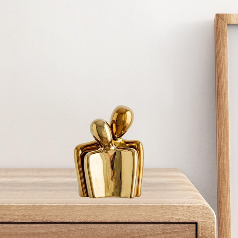 Generic Abstract Embracing Couple Statue Desk Sculpture Ceramic Figurine Table Ornament for Desktop, Gold
