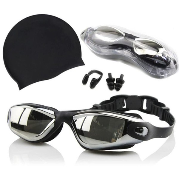 Generic Adult Swimming Set, AntiFog Electroplating Swimming Goggles Hat Waterproof Silicone Nose Clip Earplugs Kit, Genericghvgu1m2q6
