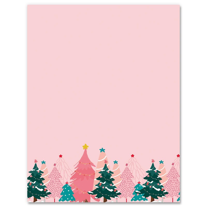 Generic AnyDesign 60 Sheet Christmas Stationery Paper Pink Xmas Tree Letterhead Letter Writing Paper for Winter Holiday Notes Greeting Card Invitation Office Printing, 8.5 x 11 Inch, Single-Sided