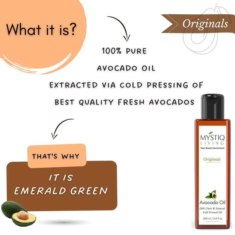 - Avocado oil deeply moisturizes and conditions hair, right from the root, making it vibrant and silky. Rich in nutrients, it strengthens hair, preventing split ends and hair fall.