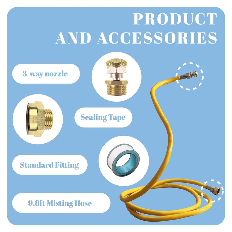 🌿 Customized: We offer 9.8ft hose , longer than similar products in the market, to meet your needs from 1 to 9.8 feet, making your garden mist cooling system simple and efficient.