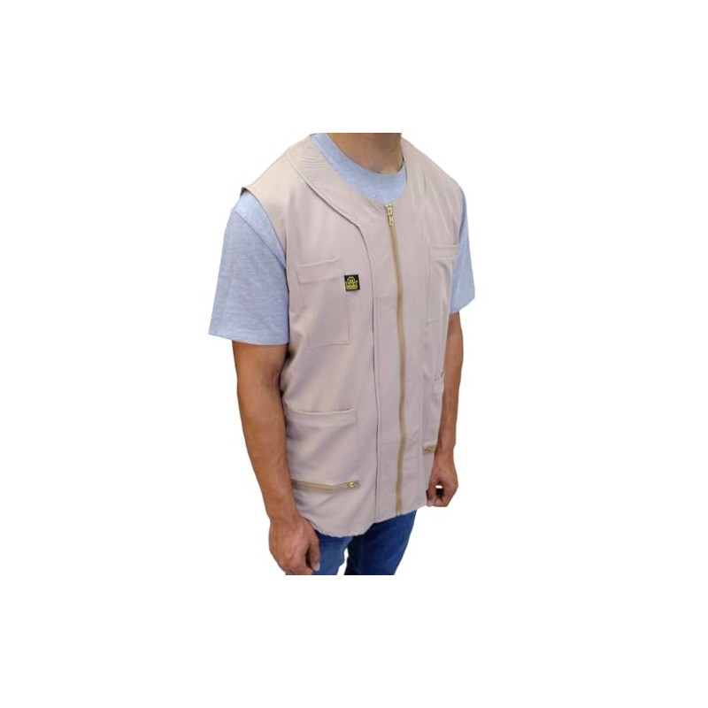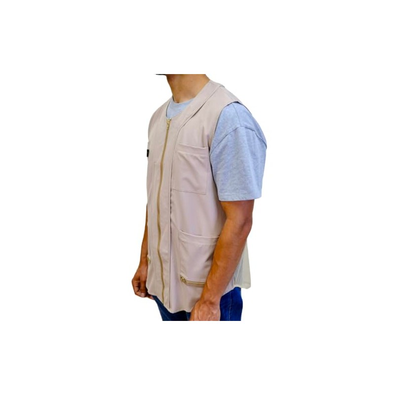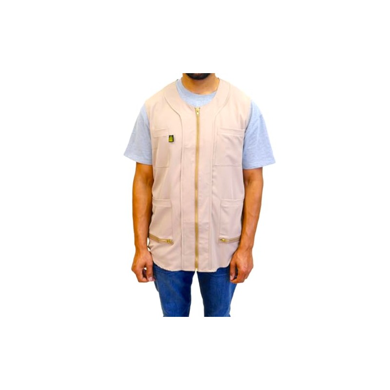 - This barber vest features multiple versatile zippered pockets. The King Midas barber vest comes with 2 large and 2 small tool pockets to keep all your hair styling and barbering tools in one place. The bottom 2 pockets have one way brass zippers for easy cleaning and removing hair.