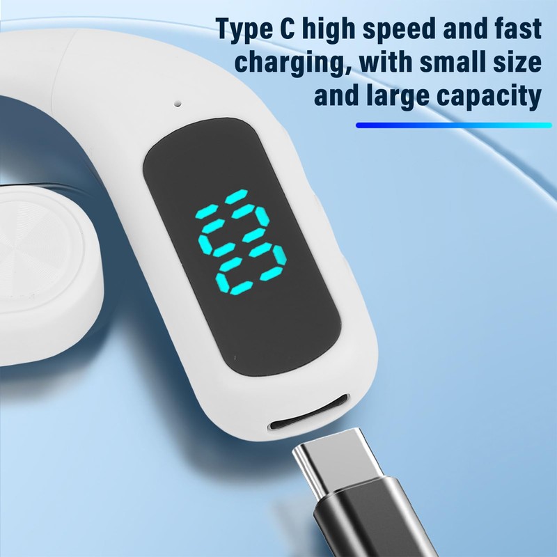 Generic Bluetooth Headset, Wireless Sports Headphones, Bluetooth 5.5 Stereo Ear Hook Single Ear Business Sport Earphone with Noise Canceling Mic, Digital Display for Business, Travel (White)