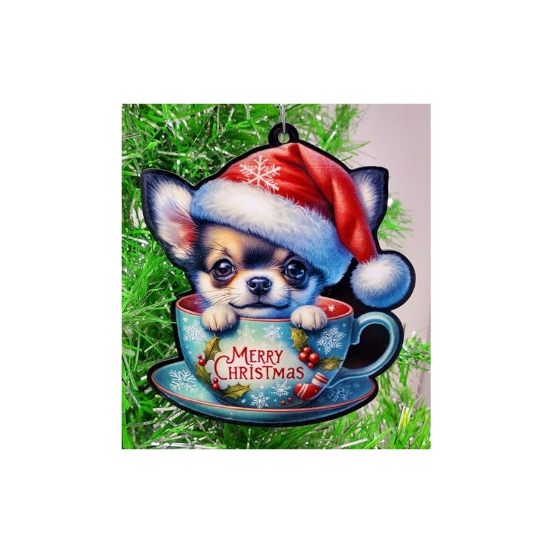 Generic Chihuahua Santa Pup in Merry Christmas Tea Cup Ornament