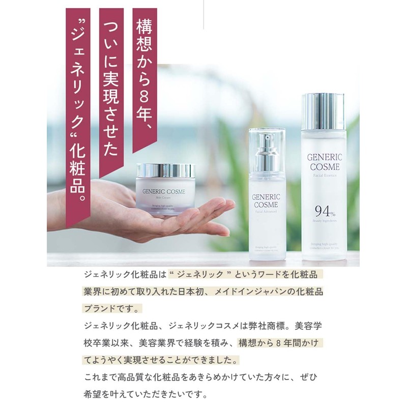 - ◆ Price: 3,300 yen ◆ Contents: 1.7 fl oz (50 ml) ◆ Manufacturer Name: Generic Cosmetics ◆ Country of Origin: Japan