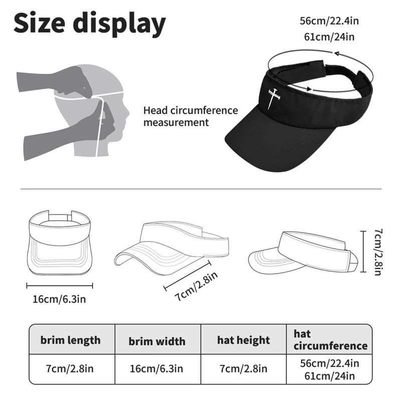 Generic Cross Nails Caps Sun Visor Hat for Adult Running Cap Retro Visor, One Size-Medium, Allblack