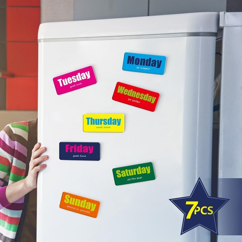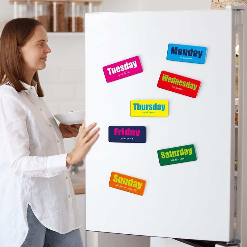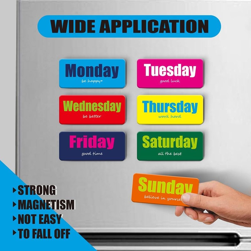 - Magnetic: our days of the week stickers feature with magnetic performance, so you don't have to worry about falling when you close the door; Suitable for decorating your fridge, locker, whiteboard, window, office and classroom or other places you want to post
