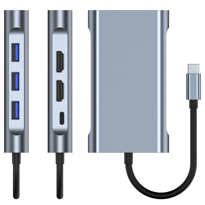 Generic Docking Station for Laptops and Tablets, 8-in-1 USB-C, Triple 4K HDMI Display Adapter, Ethernet, USB 3.0 Hub (Round), Grey
