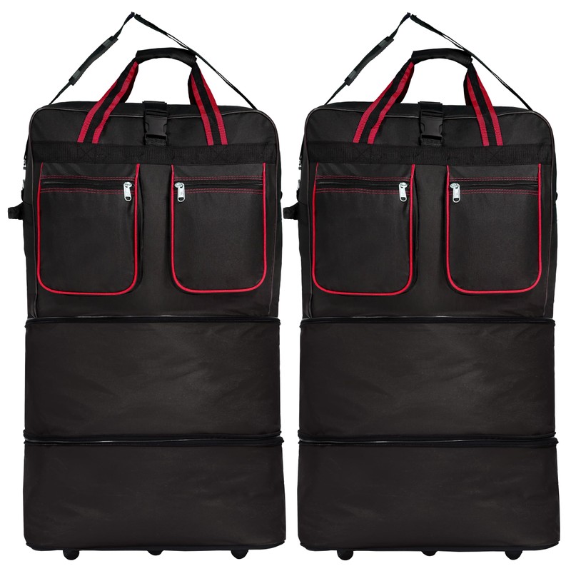 Generic Expandable Lightweight Duffle Bag (40"") Rolling wheeled Spinner Suitcase Luggage for Travel and Storage - (Pack of 2) (Red Trim), NAVBL2PK40