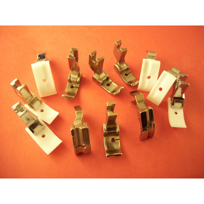These piping feet will also fit many other household and industrial sewing machines with high shank presser foot system.