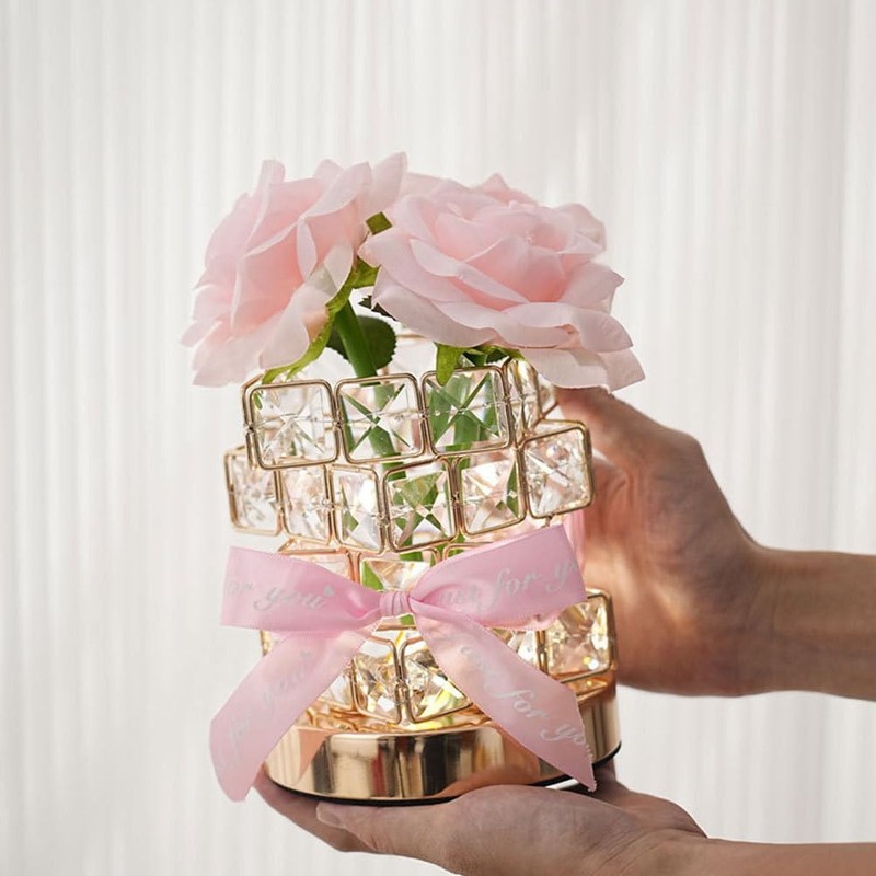 • 💡⭐🌹➣➣➣The exquisite crystal lampshade also adds a decorative touch to your room. LED Artificial Flowers Small Table Lamp Night Light with Glass Vase, Cordless Touch Lamp for Home Bedroom Living Room Desktop Decor