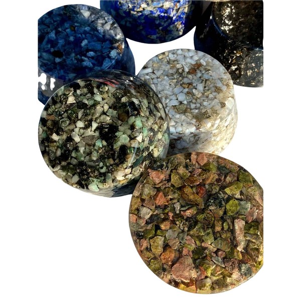 Orgone Generator Energy Accumulator ** Size: Height-1"H-25mm Width Top 2"-50mm Base-2.25"B-63mm; * Made with Love* FREE GIFT with every complete order*Fast Shipping*Thanks For Looking! Orgone is a handmade product and may have some small imperfections such as bubbles or texture variations; this in no way affects the quality or function of the orgone devices. Thanks for your orders! purifies atmosphere, transmutes negative energy into positive energy, benefits sleep and overall health, boosts plant growth, enhances. Orgone takes Deadly Orgone Radiation (DOR) and turns it into Positive Orgone Radiation (POR). Simply put POR is the creative life force in nature. Orgone generators are also thought to mitigate the harmful effects of Electromagnetic waves, ELF and HAARP waves in your environment. Put them near your TV, computer or anywhere in your living space. Even put them in your garden and watch it flourish a bloom like never before::Disclaimer: We make no medical claims about our products. If you have a medical conditions please consult a physician.::++ Note: Pictures are stock pictures of pieces we have made. You will receive 1 Tower Buster similar to pictures. These are handmade art pieces and vary slightly from piece to piece.+++++++++++++