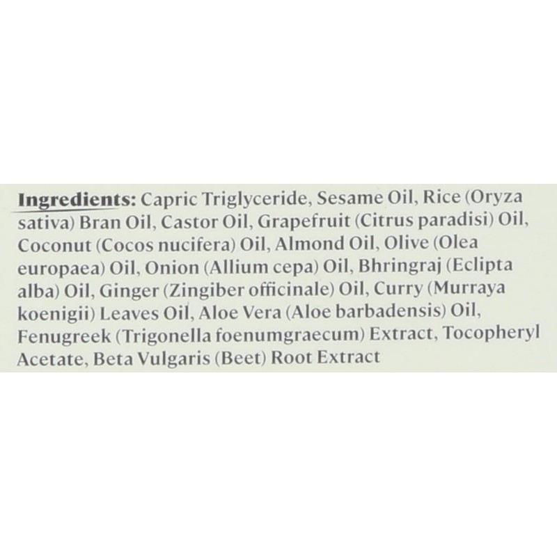 - 100% VEGAN and 100% NATURAL - Blend of ingredients like Coconut Oil, Onion Oil, Rice Bran Oil, Castor Seed Oil, Grapefruit Oil, Sweet Almond Oil, Olive Oil, Bhringraj, Ginger, Curry Leaf, Aloe Vera, Beet Root Extract, Fenugreek extract to strengthen hair.