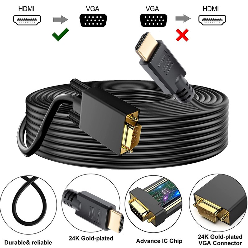 Built-in advanced IC chip to convert HDMI digital signal to VGA analog signal; It is not a bidirectional converter and cannot transmit signals from VGA to HDMI.