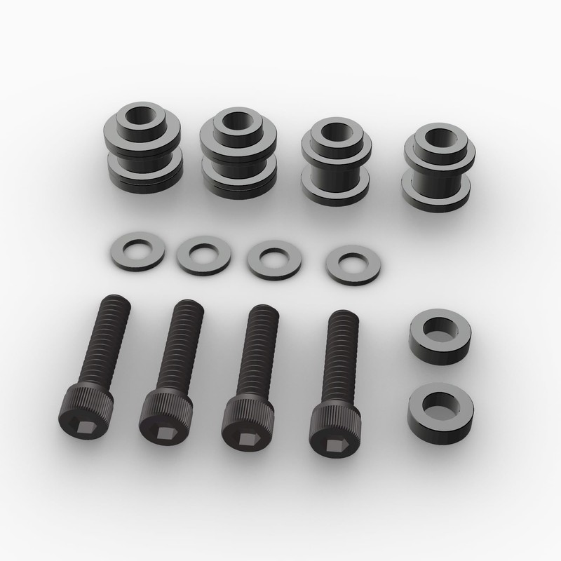 - **Package Includes**: The package includes 4 bolts, 2 front docking points, 2 rear docking points, and 2 front spacers, along with 4 spacer washers, ensuring all necessary components are included for installation.