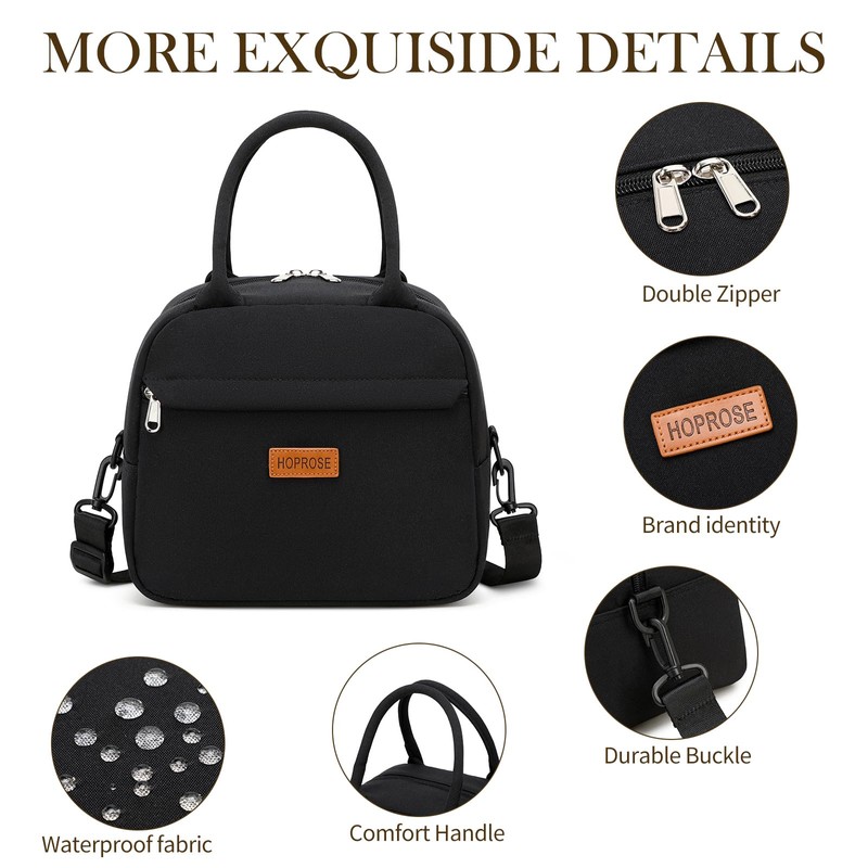 Generic HOPROSE Lunch Bags for Women Men Adults, Insulated Leakproof Lunch Box Large Capacity Lunch Tote Bag, Reusable Cooler Lunch Container for Work/Picnic/Camping (Black), #1801