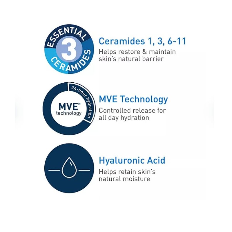 Developed with dermatologists, hydrating facial cleanser is a daily face wash. The unique formula that cleanses, hydrates, and helps restore the protective skin barrier with three essential ceramides. The formula also contains hyaluronic acid to help retain the skin's natural moisture. Unique formula with three essential ceramides that cleanses, hydrates, and helps restore the protective skin barrier. Formulated hyaluronic acid to help retain the skin's natural moisture.