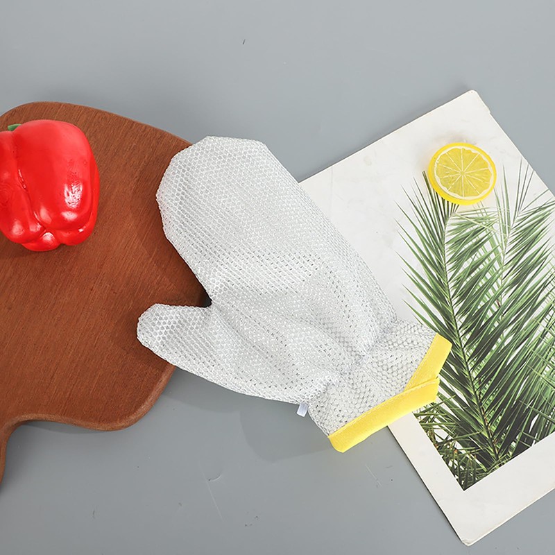 - VERSATILE SCRUBBING SURFACES: The scrubbing side of these gloves is designed to eliminate stubborn debris from a wide range of kitchen items without causing scratches. They are easy to clean and slightly larger than a standard kitchen sponge, featuring a Japanese stainless steel cleaning cloth that excels at removing stuck-on food and grease from various surfaces.