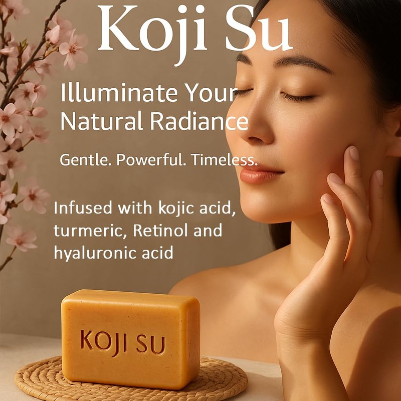 Generic Koji Su Brightening Soap C Kojic Acid, Turmeric, Retinol & Hyaluronic Acid C Fade Dark Spots & Even Skin Tone C Made in USA C Gentle Face & Body Cleanser