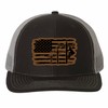 Key Features: * Color Options: Available in Black/Charcoal with Dark Brown leatherette * Material: Made from 60/40 cotton/polyester, offering a comfortable and durable fit. * Back: Features a 100% polyester mesh back for breathability and a secure fit. * Design: Structured, mid-profile, six-panel design for a balanced silhouette. * Vision Protection: Pre-curved contrast stitched visor for added protection against sun rays. * Stylish: Underbill matches the color of the visor for a cohesive look. * Adjustability: Features an adjustable plastic snapback for a customizable fit. * Care Instructions: Not machine washable, ensuring durability and longevity. * Product Size: OSFM (7 C 7 3/4) * Product Weight: 3oz in 9x7x5 box * Decorated in the USA: Shipping to you from South Carolina Make us your cap daddy ;)