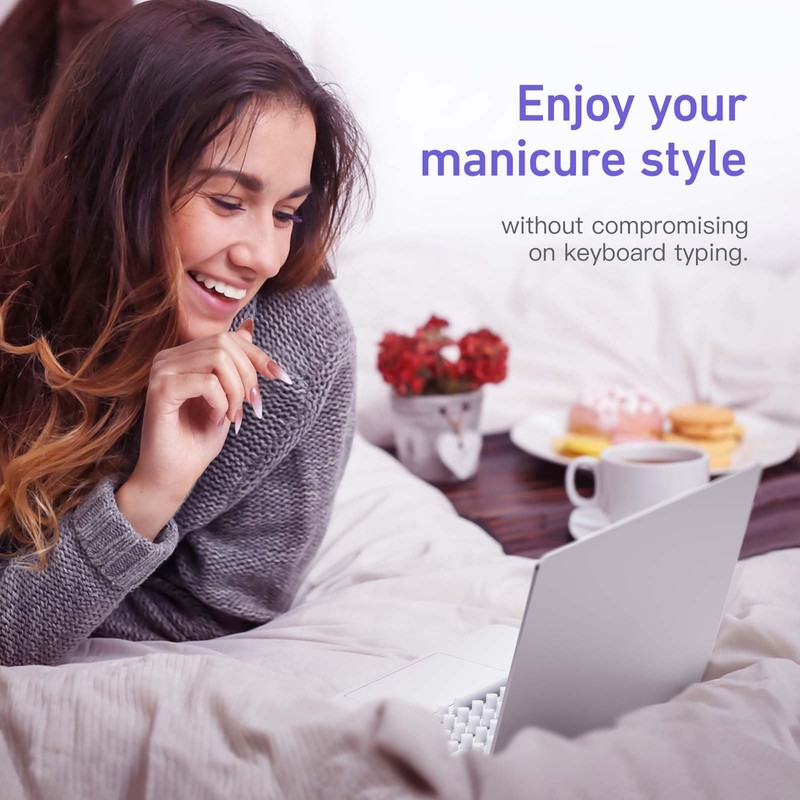 - Nail-Friendly Design: With raised keycaps and ample space for long nails, typing becomes natural and efficient. Enjoy increased speed and accuracy while keeping your nails intact and beautiful!