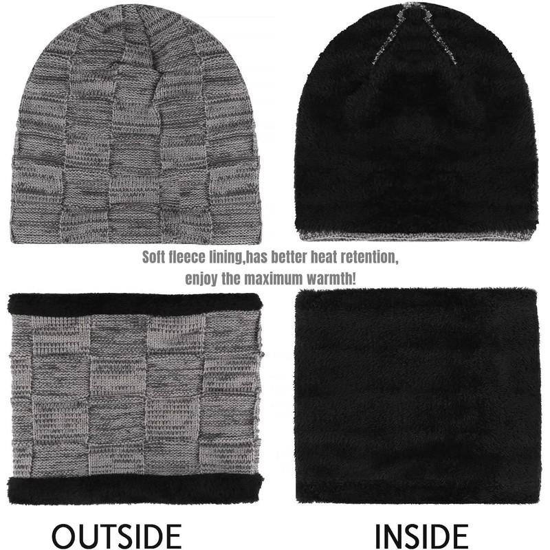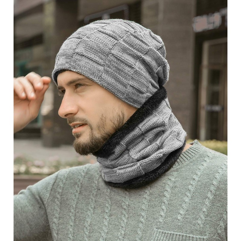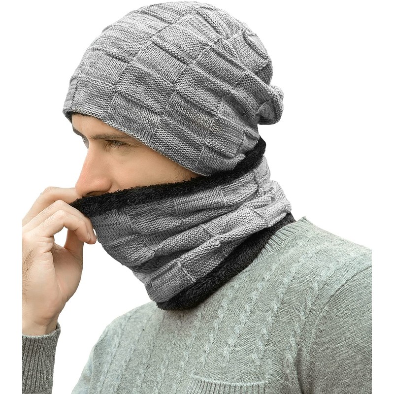 Generic Men's Winter Hat Scarf Set, Warm Knitted Hat and Scarf with Fleece Lining, Winter Warm Beanie Hat Knitted Scarf Set for Men and Women, Tube Scarf Hats Hats, gray