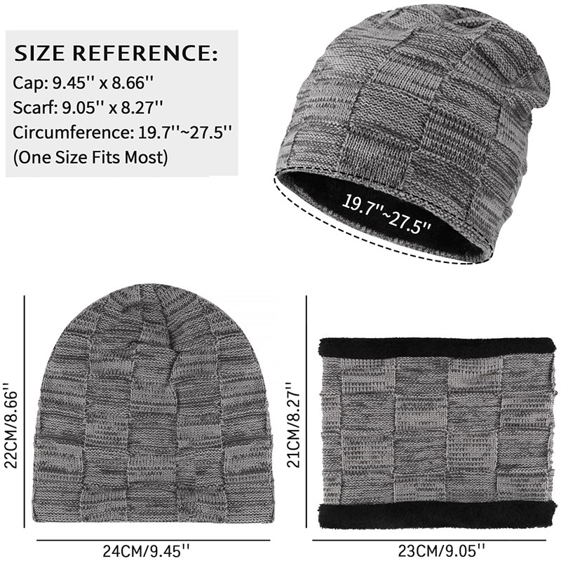 - Size: stretchy hat and scarf set, the ski hat can be stretched and in unisex style for most men and women. Cap 10.2 inches x 9.8 inches (L x W); scarf 9.4 inches x 8.7 inches (L x W). Circumference: 22 - 24 inches. Suitable for both men and women.
