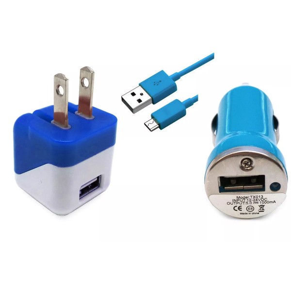 Generic Mini USB Car, Wall, Cable Adapter Charger Combo - Blue