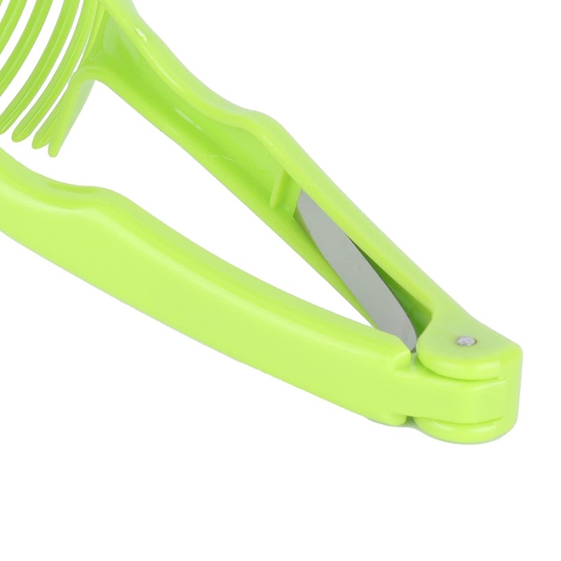 Generic Multipurpose Potato Cutter, Onion Holder, Lemon Slicer with Tongs for Tomato and Fruit, Convenient Kitchen Gadget for Safe and Easy Slicing, ABS Material, Green, Product Size: