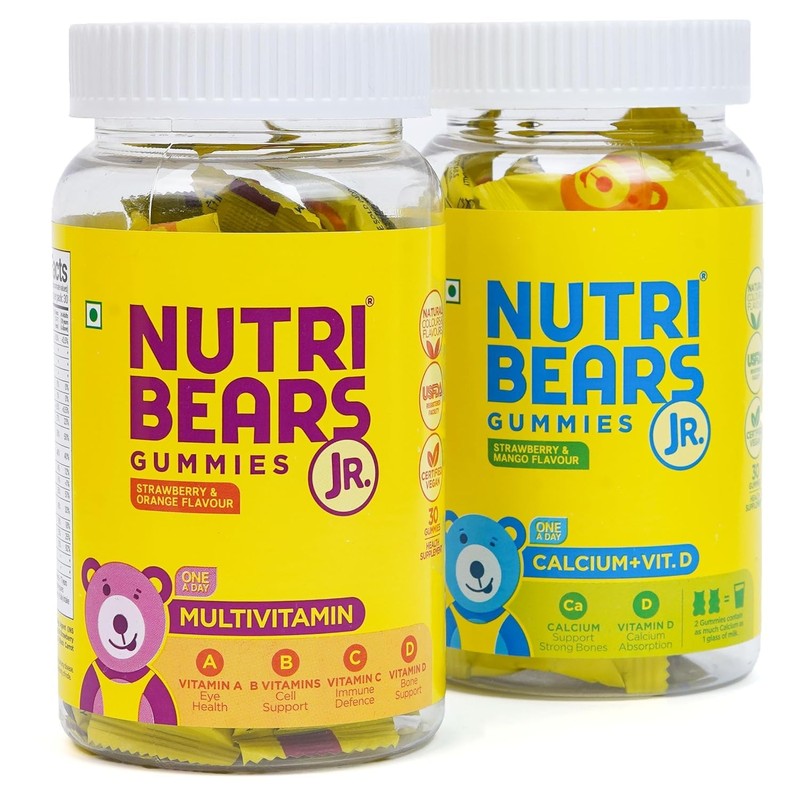 Generic Multivitamin and Calcium Gummies for Kids, Combo Pack (60 Gummy Bears, Strawberry, Orange & Mango Flavour) Vitamin C, D, & Zinc for Immunity, Supplement for Strong Teeth and Bones