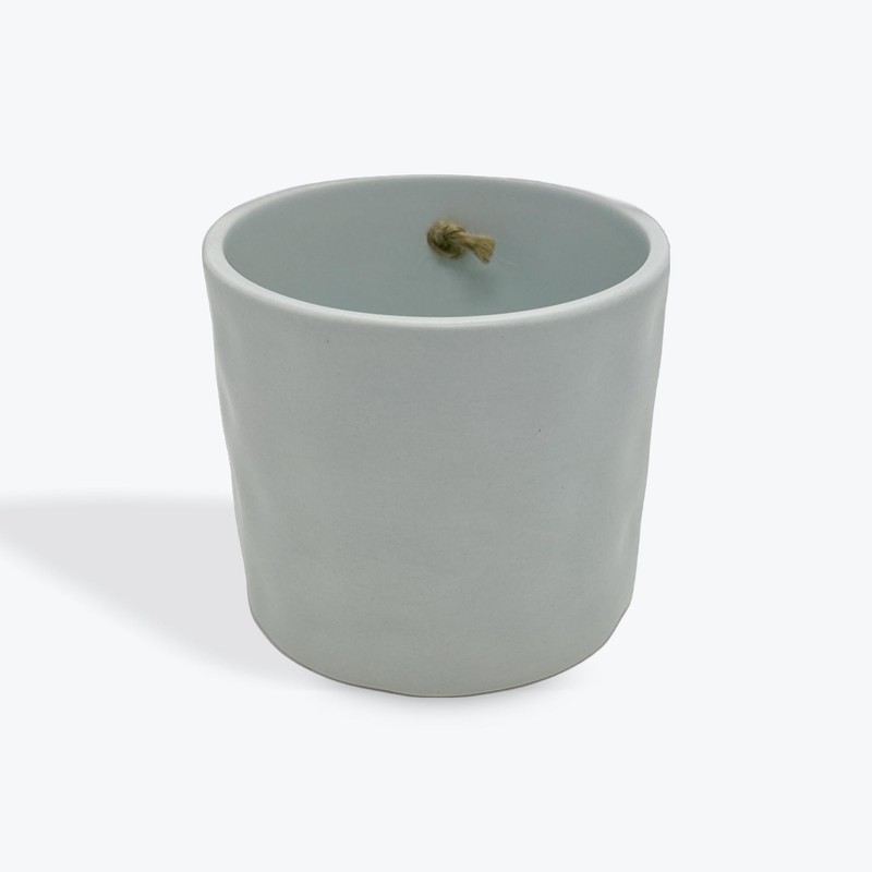 - The Pot is a Pastel Blue Color with a White Ceramic Star Charm that hangs from a Piece of Hemp Rope.